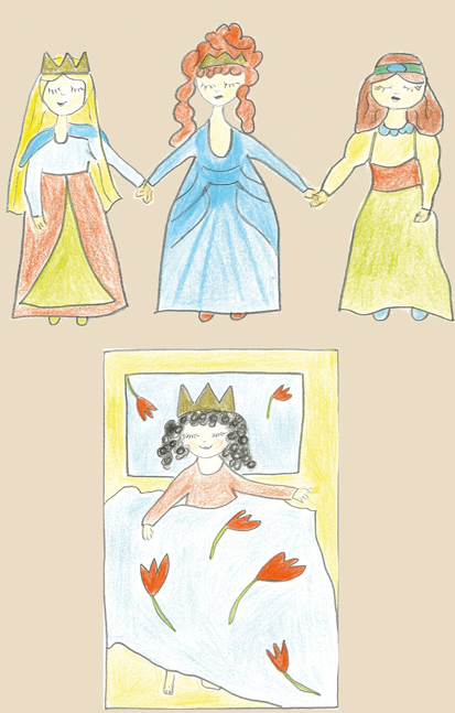 Myślą o naszej czwartej królewnie Trzy przyjaciółki i płaczą rzewnie Dlaczego nie ma jej w bajek świecie Gdzie jest Sasanka- to przecież wiecie